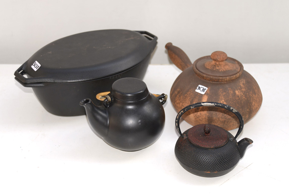 Lotto composto da due teiere e due pentole in materiali diversi -EN Lot comprising two teapots and two casseroles, various materials