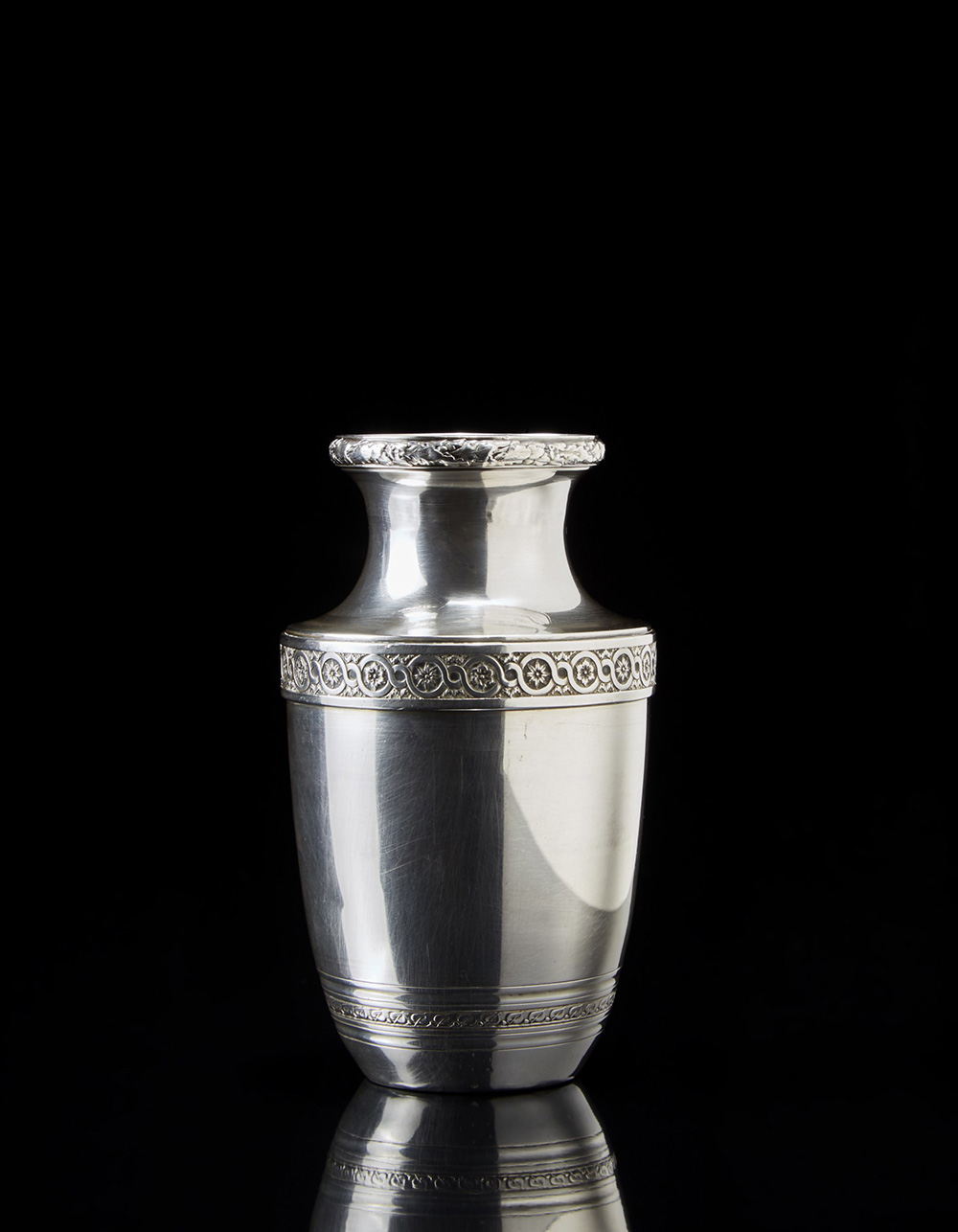 Vasetto in argento con corpo decorato nella fascia a motivi concatenati....