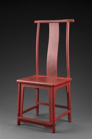 Poltrona cinese in legno laccato rosso
