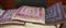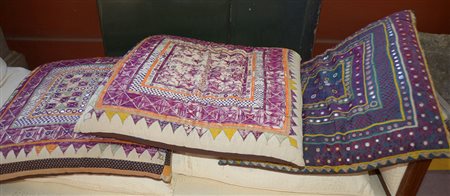 Gruppo di tre grandi cuscini orientali decorati con specchi