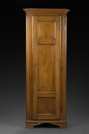 Angoliera in noce ad un'anta riquadrata. Piedi a mensola (cm 78x196x40) -EN Walnut wood corner cabinet