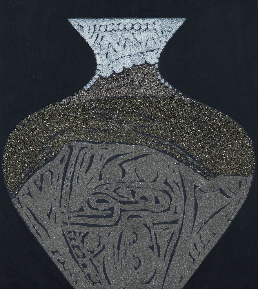 HASSAN FATHI Il Cairo (Egitto) 1957 - Contenitore di luce, 2008, tecnica mista e sabbia su tavola cm. 37x33, firma, titolo e anno al retro, dichiatrazione d'autenticità e timbro dell'artista su foto.