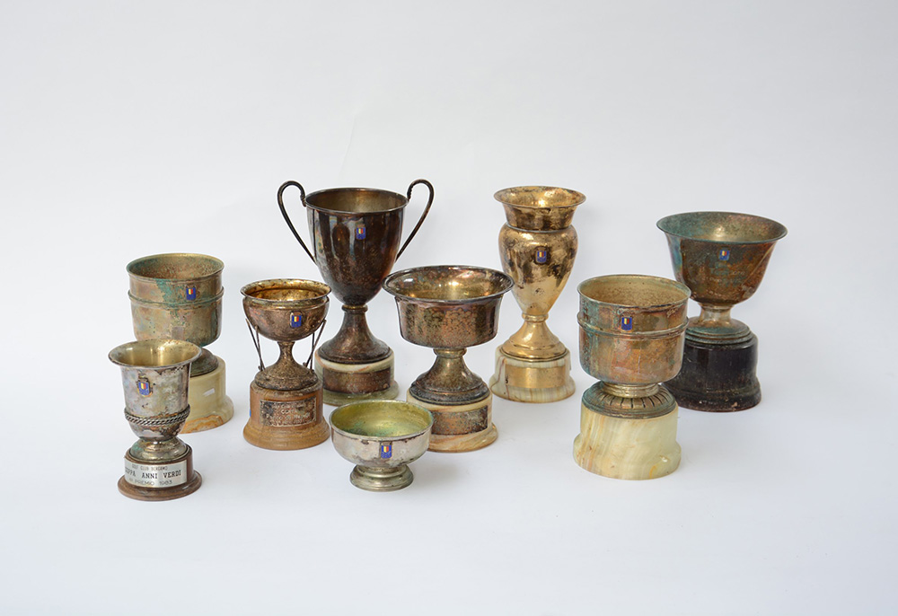 Lotto composto da nove trofei in argento e metallo argentato (difetti)