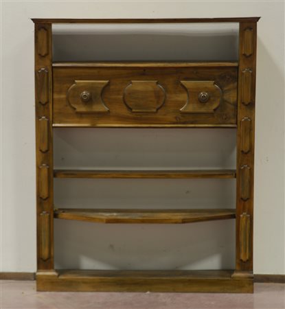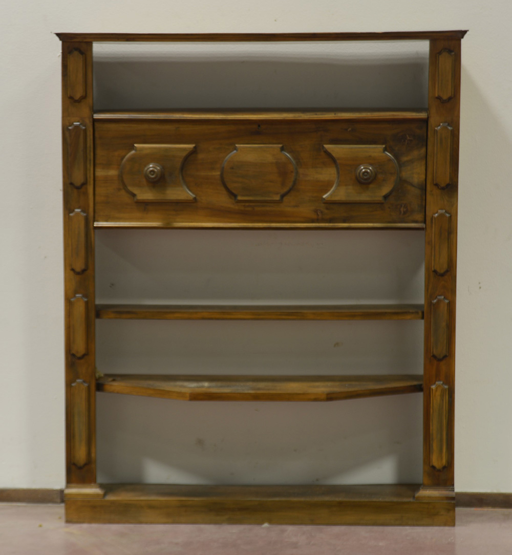 Librerietta/mobile bar da incasso in stile rinascimentale ad un anta ribaltabile pannellata e vani a giorno (cm142x173x30) (difetti)