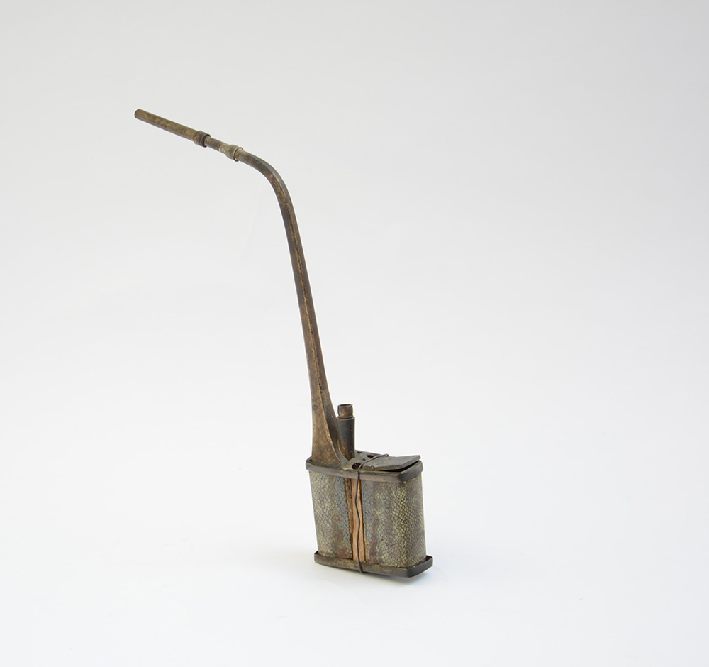 Pipa da oppio in ottone rivestita in galuchat (difetti e mancanze) Cina, sec. XX