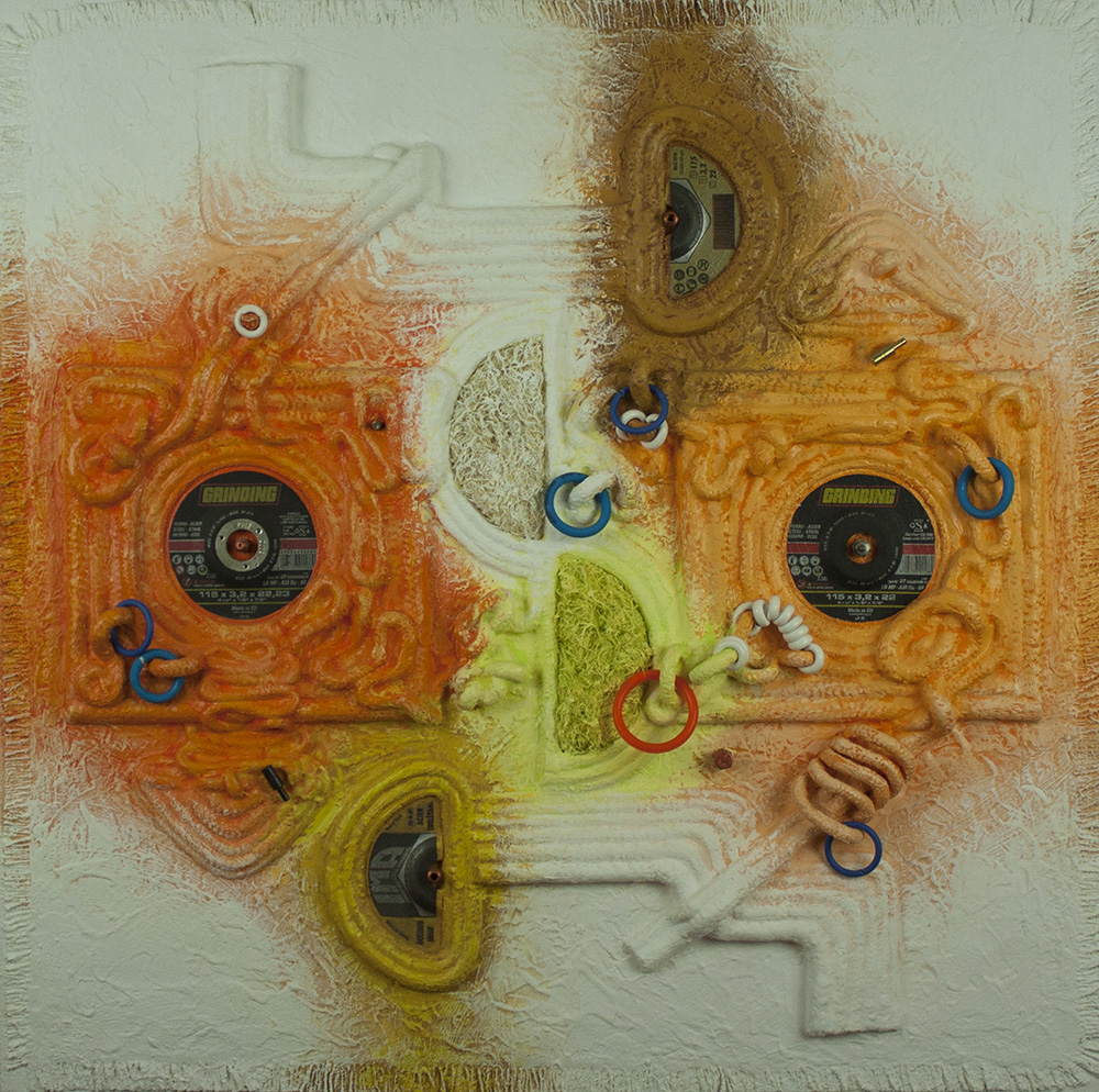 VITO SARDANO Monopoli, 1948 " To overshoot A19Z " anno 2007 pittoscultura olio su multistrato 80x80 cm al retro titolo, anno e firma