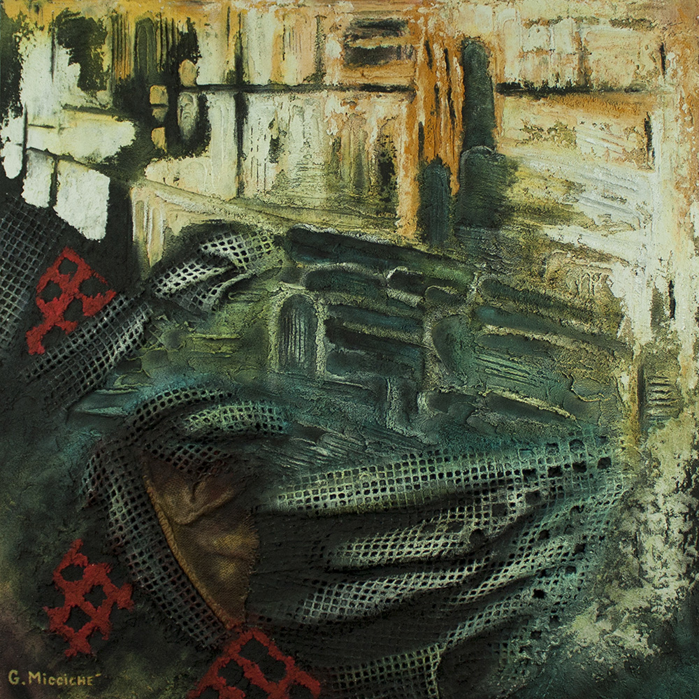 GERLANDO MICCICHÈ Agrigento, 1951 " Angoscia e lacrime op. n. 3 " anno 2016 tecnica mista su tela 90x90 cm firmato al fronte; al retro Certificato dell' Artista
