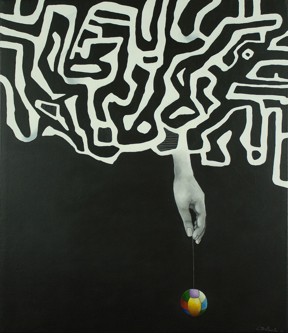 VITO DISTANTE Francavilla Fontana, 1958 " Enigmatic game " anno 2014 acrilico su tela 70x60 cm firmato e datato al fronte; al retro firma + timbro dell' Artista