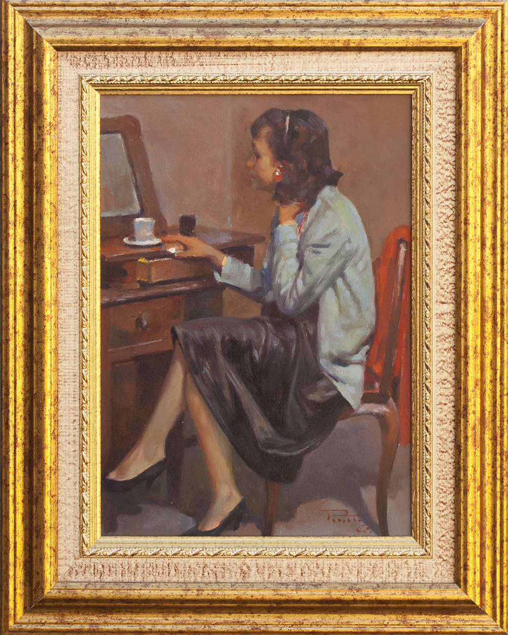 GIOVANNI PARLATO Vico Equense 1957 " Patrizia " olio su masonite 25x35 cm firmato al fronte; al retro etichetta Artista; con cornice