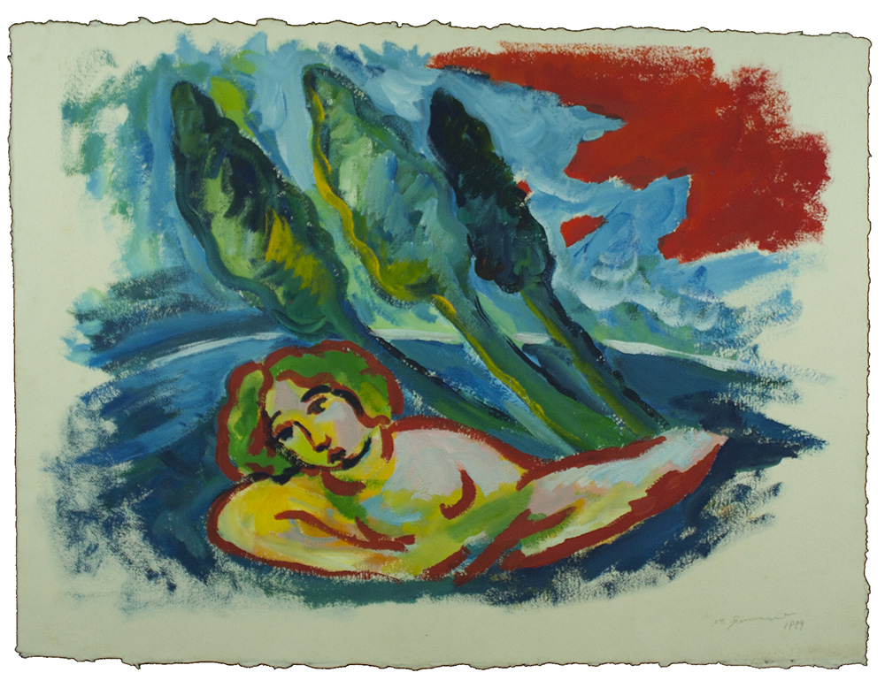 MIMMO GERMANÀ Catania 1944 - Busto Arsizio 1992 olio e tecnica mista su carta anno 1989 56x75 cm firmato e datato in basso a destra