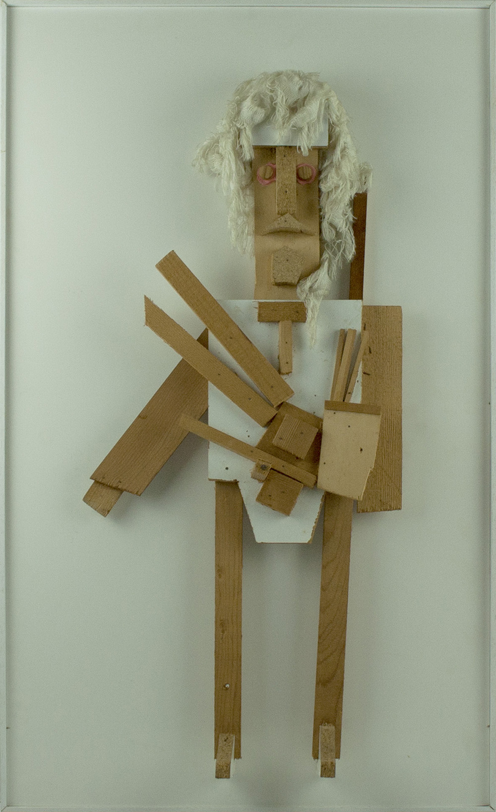 ENRICO BAJ Milano 1924 – Vergiate 2003 " Menelao " scultura in legno, compensato e stoffa, entro teca in plexiglass 78x32x8 cm Firma a tergo: Baj Esp.: Iliade. Settanta personaggi di Enrico e Andrea Baj 1987-1988, catalogo della mostra, Roma, 14 marzo-15 aprile 1988, p. 11; p. 36