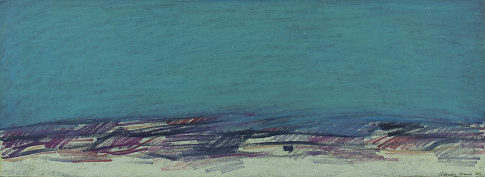 CLAUDIO VERNA Guardiagrele, 1937 pastelli e tecnica mista su carta 40x85 cm anno 1983 firmato e datato in basso a destra Autentica dll' Autore su fotografia