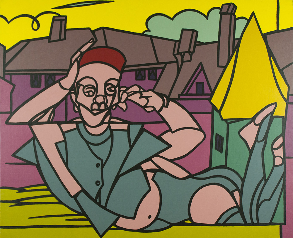 VALERIO ADAMI Bologna 1935 " Nemesi " anno 2014 acrilico su tela 81x100 cm firmato e titolato al retro Autentica dell' Autore su fotografia
