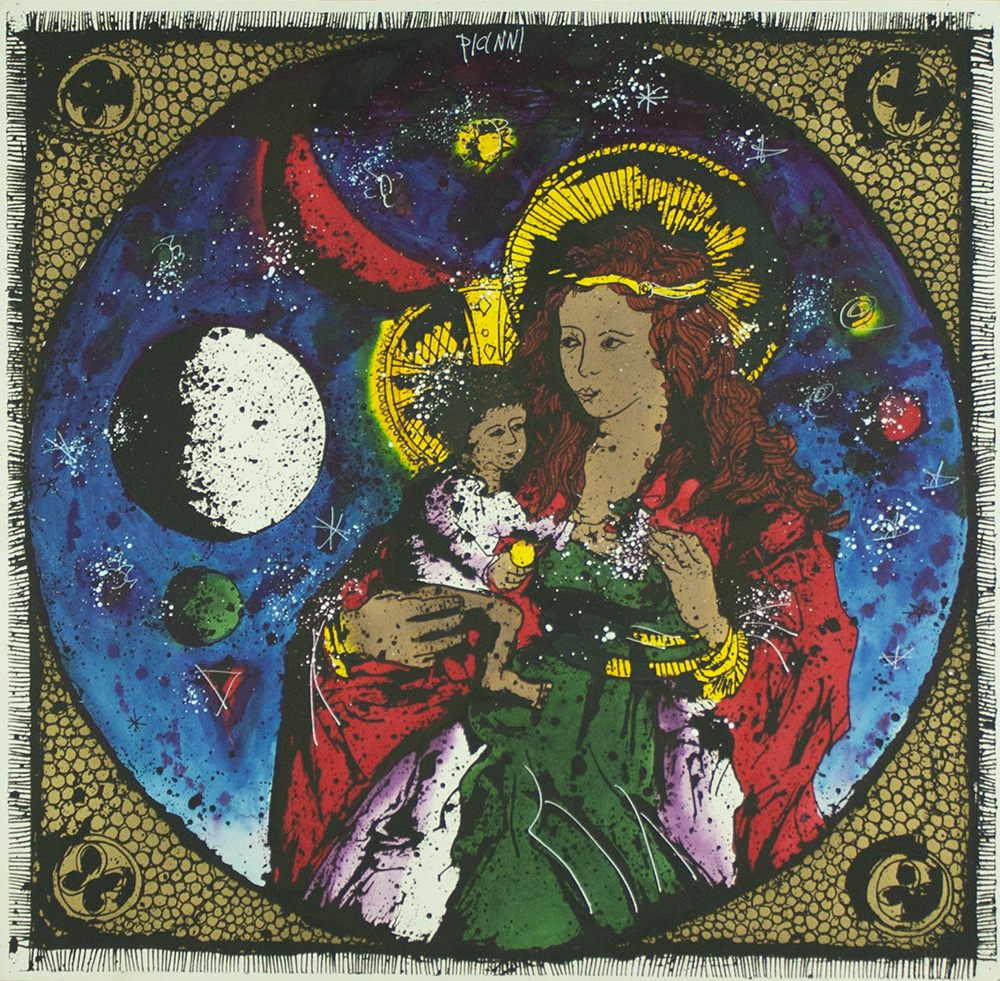GENNARO PICINNI Bari, 1933 " Madonna con bambino " tempera su cartoncino 70x70 cm firmato in alto al centro