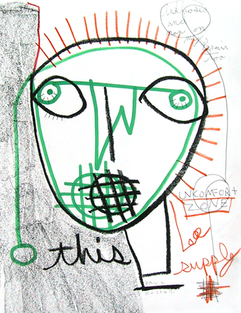 PAUL KOSTABI Whittier (USA) 1962 Uncomfort zone 2002 T.m. su carta 35,5 x 28. Firma in b. a d.; sul verso titolo, firma e data. Autentica dell’autore su foto. Pubbl.: “Paul Kostabi” cat. mostra a cura di Silvio Guarasci, Saletta Viviani, Pisa, 1 – 31 Dicembre 2007, p.14. B.A. 130