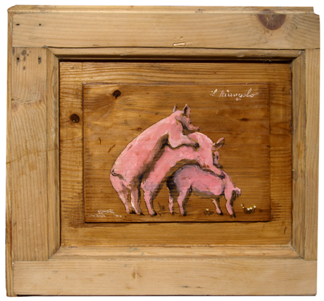 MASSIMO LOMI Livorno 1953 Il triangolo 2016 Tempera su tavola 39 x 41,5. Titolo in a. a d., firma in b. a s.; sul verso etichetta e timbro studio dell’artista. B.A. 150