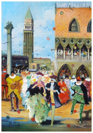 MAURO PUPPO Livorno Carnevale a Venezia 2009 Olio su tela 70 x 50. Firma in...