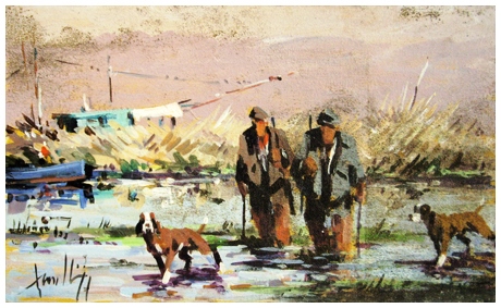 Lotto 60 | MARIO ROMBOLINI Livorno 1935 Caccia in padule Olio su faesite 11,7 x 19,3....