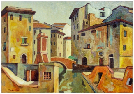 SABATINI Senza titolo Olio su catone intelato 35 x 50. Firma in b. a s. B.A. 50