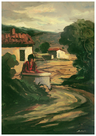 DOMENICO (SELO) SELOSKI Napoli 1924 – Livorno 1981 Senza titolo Olio su faesite 50 x 35. Firma in b. a d. B.A. 100