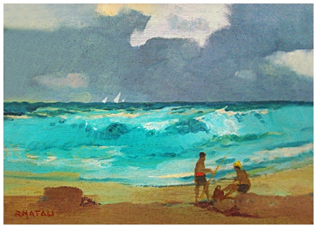 RENATO NATALI Livorno 1883 – Livorno 1979 Marina Olio su tavola 20 x 30....
