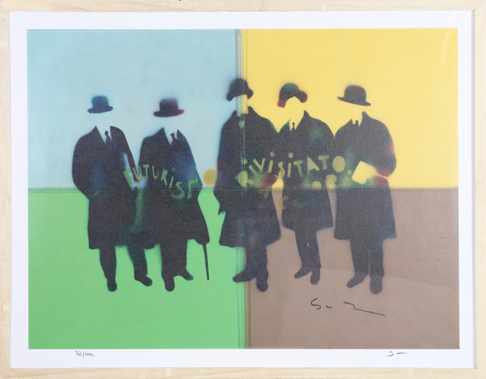 SCHIFANO MARIO (1934 - 1998) Futurismo rivisitato. Lithograph. Cm 70,00 x 50,00. 72/100. Edition and signature lower in pencil. Telemarket gallery Authenticity certificate. Cornice presente