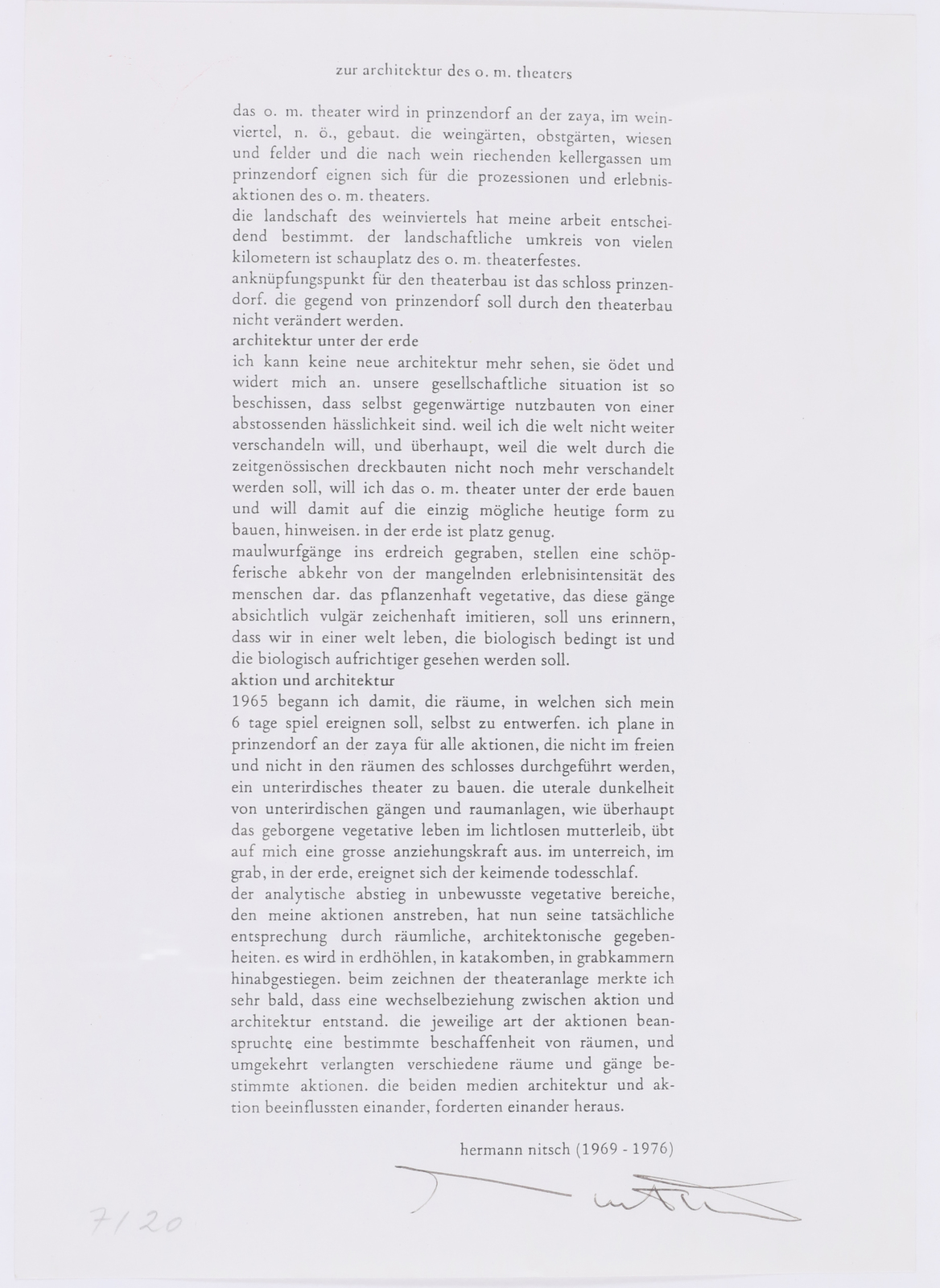 NITSCH HERMANN (n. 1938) Die architektur des O.M. Theaters. Lithograph. Cm 20,00 x 29,00. 7/20. Edition at the back, signed lower right. The work is framed within its original box and portfolio numbered and signed by the artist.