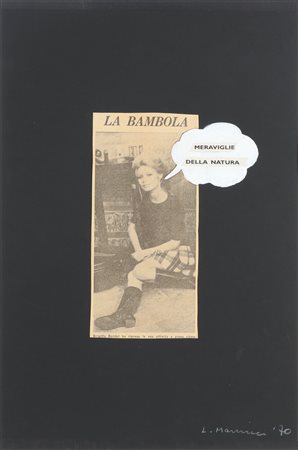 MARCUCCI LUCIA (n. 1933) The Doll. 1970. Collage on paper. Cm 24,00 x 35,00. Signature and year lower right. Provenance: Armanda Gallery - Gori Art House, Prato. Publication: General Catalog of Lucia Marcucci's Works, Volume 1961 - 2011, PAL Editore, p. 95.