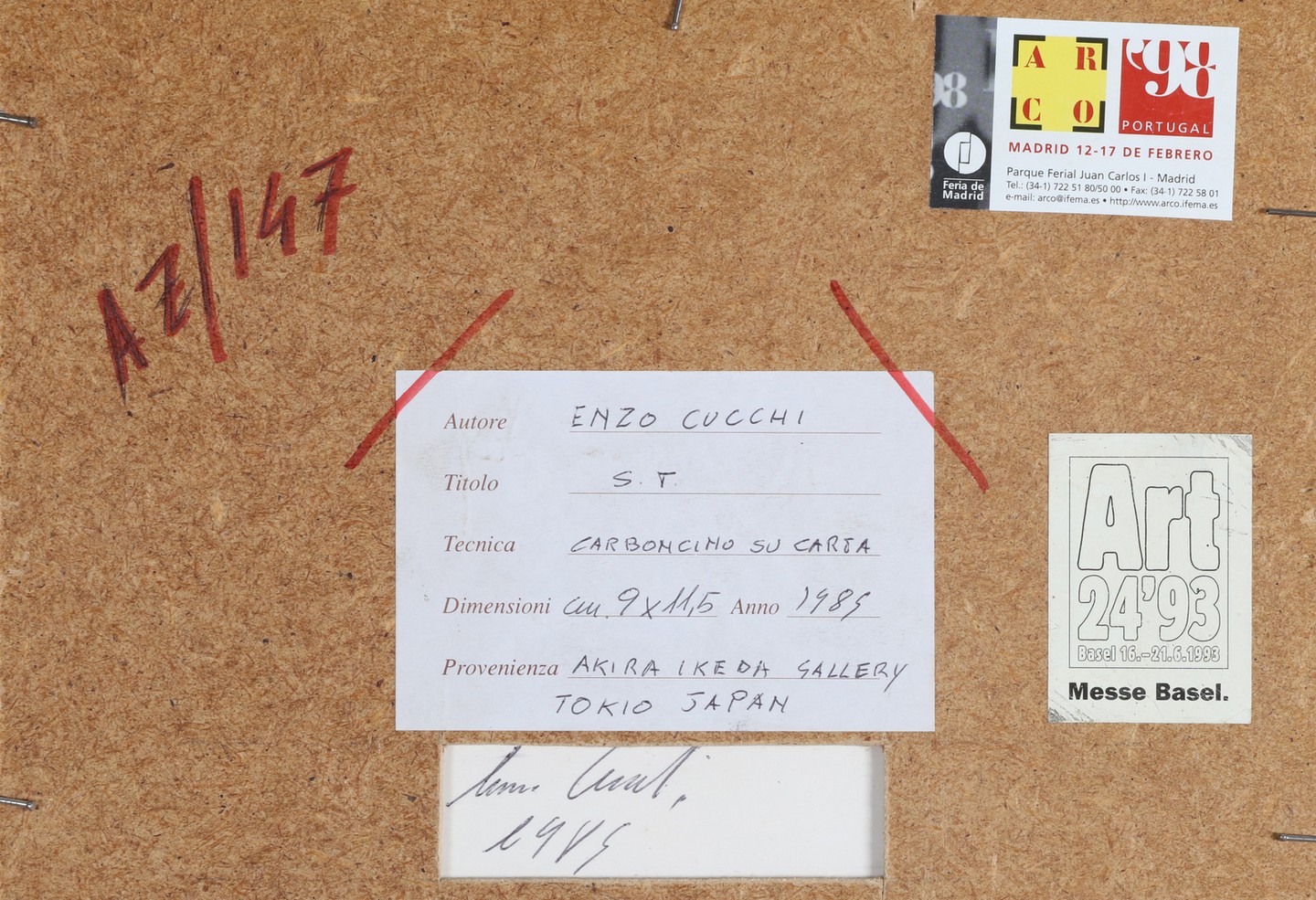 CUCCHI ENZO (n. 1949) Untitled. 1984. Mixed media on card. Cm 9,00 x 11,50. At the back signature, year, Art Basel label, June 16-21, 1993 and Arco fiere de Madrid, 1998 label. Provenance: Akida Ikesa Gallery, Tokyo (Japan); Margiacchi Gallery, Arezzo; Private Collection, Arezzo.