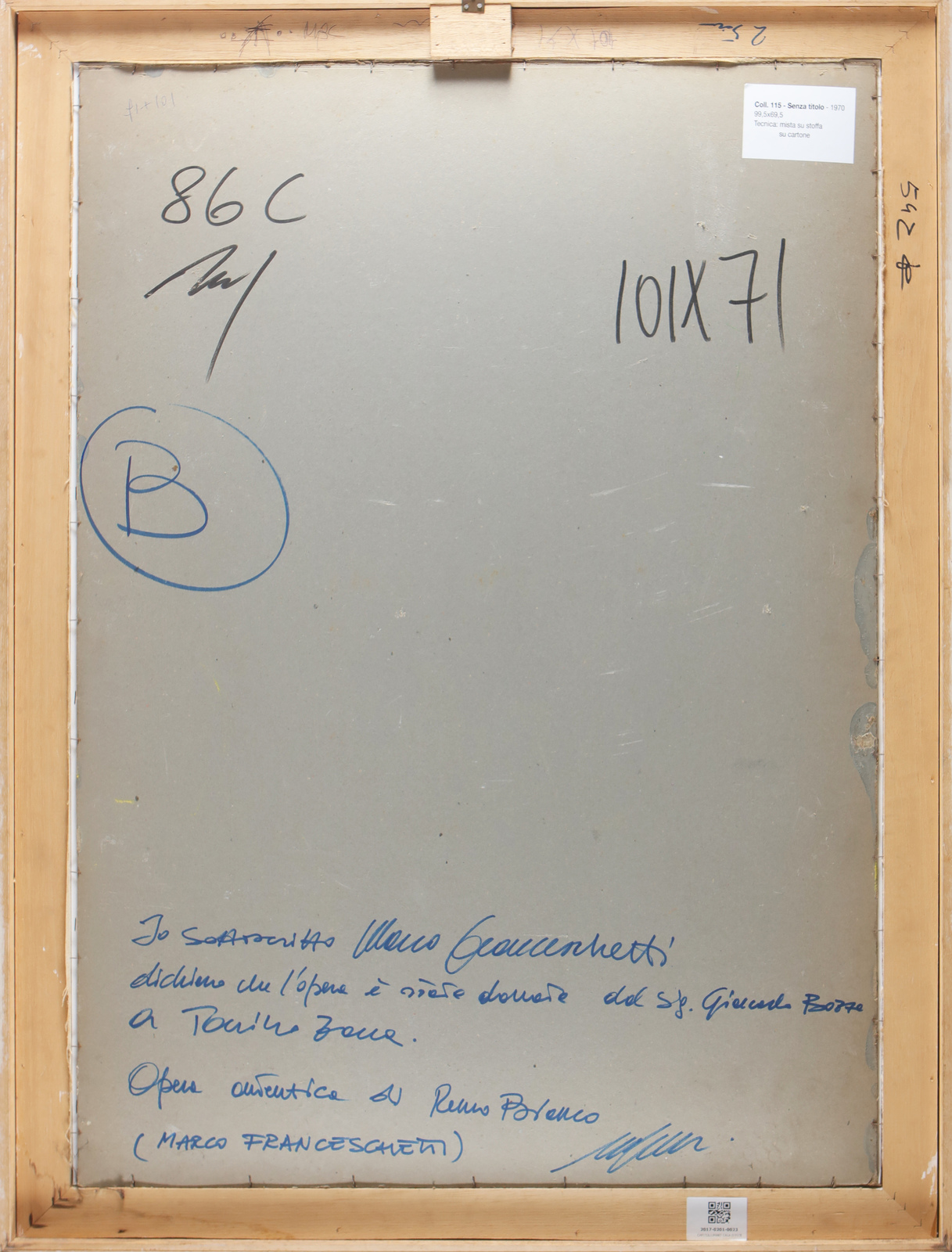 BIANCO REMO (1922 - 1990) Untitled. 1972. Mixed media and collage on cardboard. Cm 71,00 x 100,00. Signature at the back. Remo Bianco Foundation, Milan authenticity certificate. Cornice presente