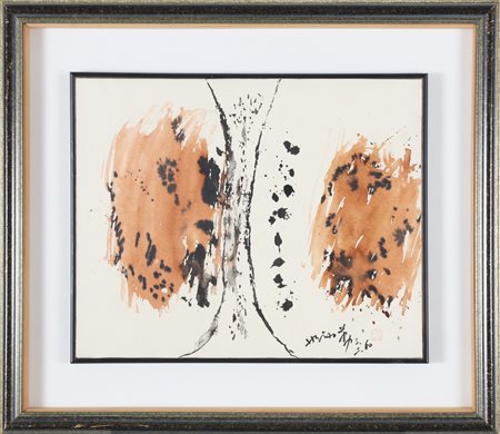 CHIN HSIAO (n. 1935) Senza titolo. 1960. Acrilico su carta incollata su tela. Cm 47,00 x 37,50. Firma e anno in basso a destra. Autentica dell'artista su fotografia. . Cornice presente