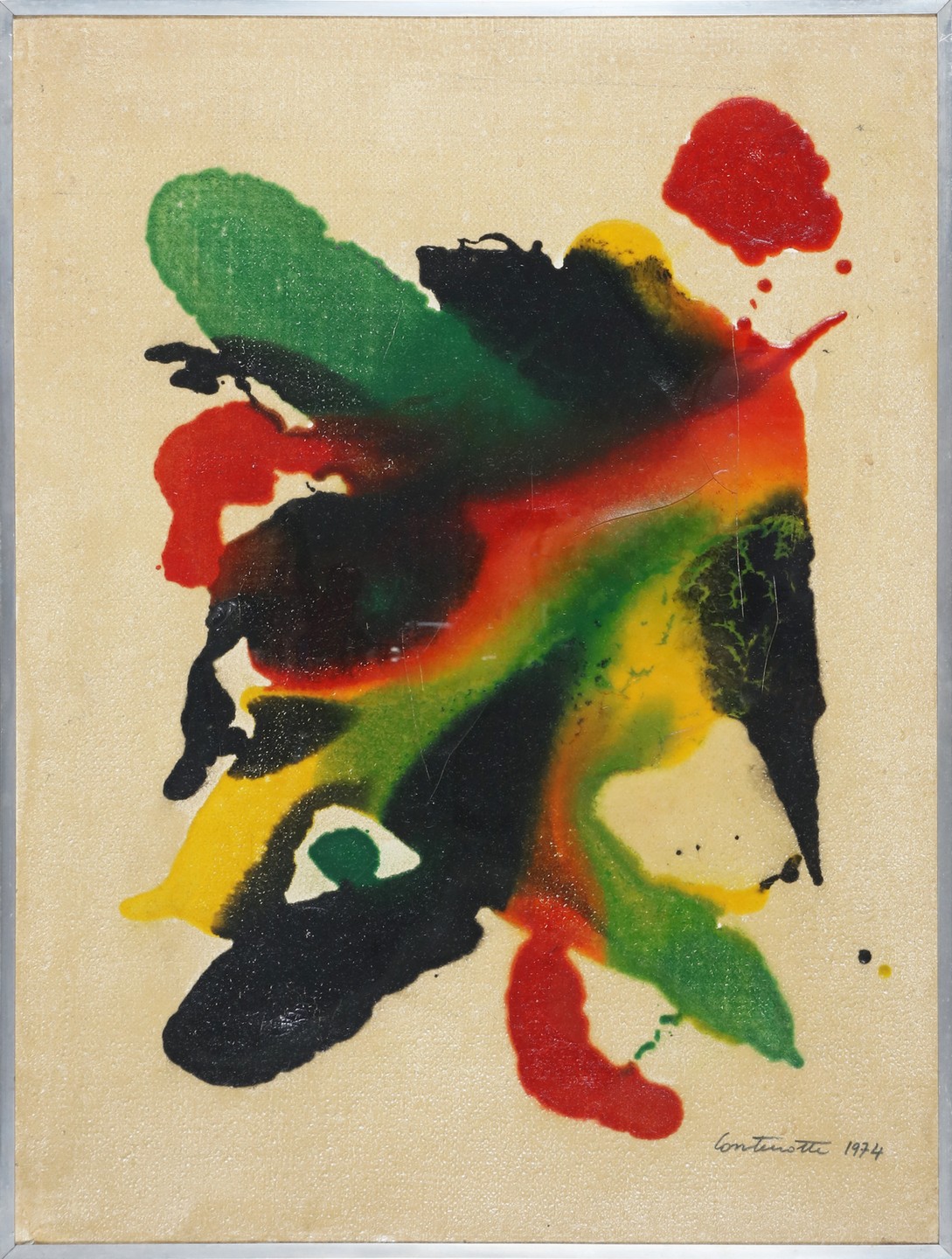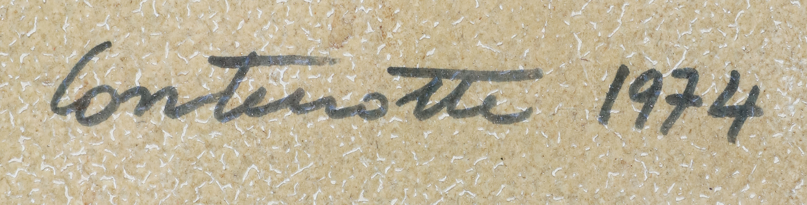 CONTENOTTE BRUNO (n. 1922) Senza titolo. 1974. Tecnica mista su tela. Cm 60,00 x 80,00. Firma e anno in basso a destra. Presenta lievi difetti. Cornice presente