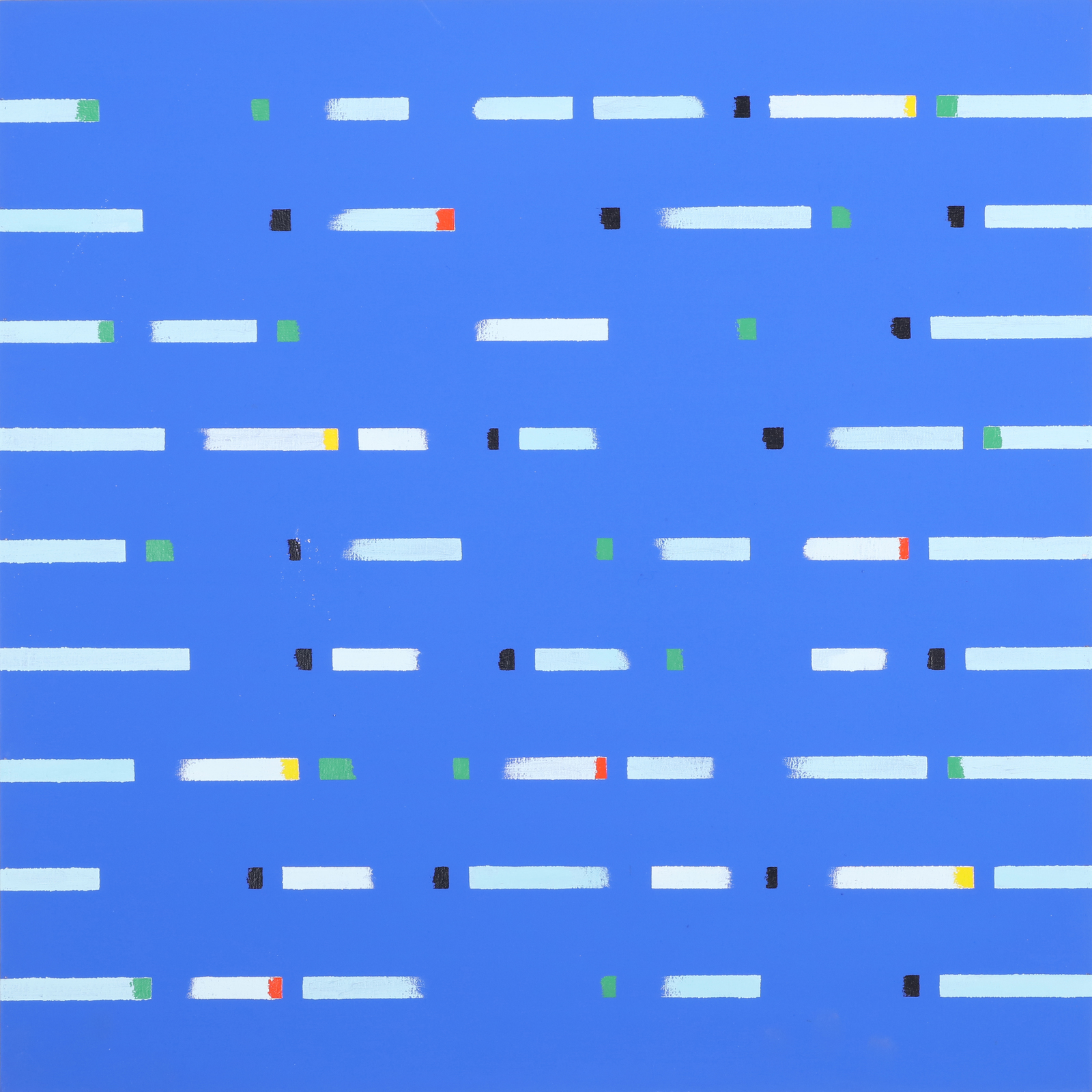 DOZIO ANGELO (n. 1941) H5. 1985. Acrilico su tela. Cm 50,00 x 50,00. Al retro titolo, firma e cartiglio Arte Struktura, Milano. Presenti lievi difetti. Cornice presente