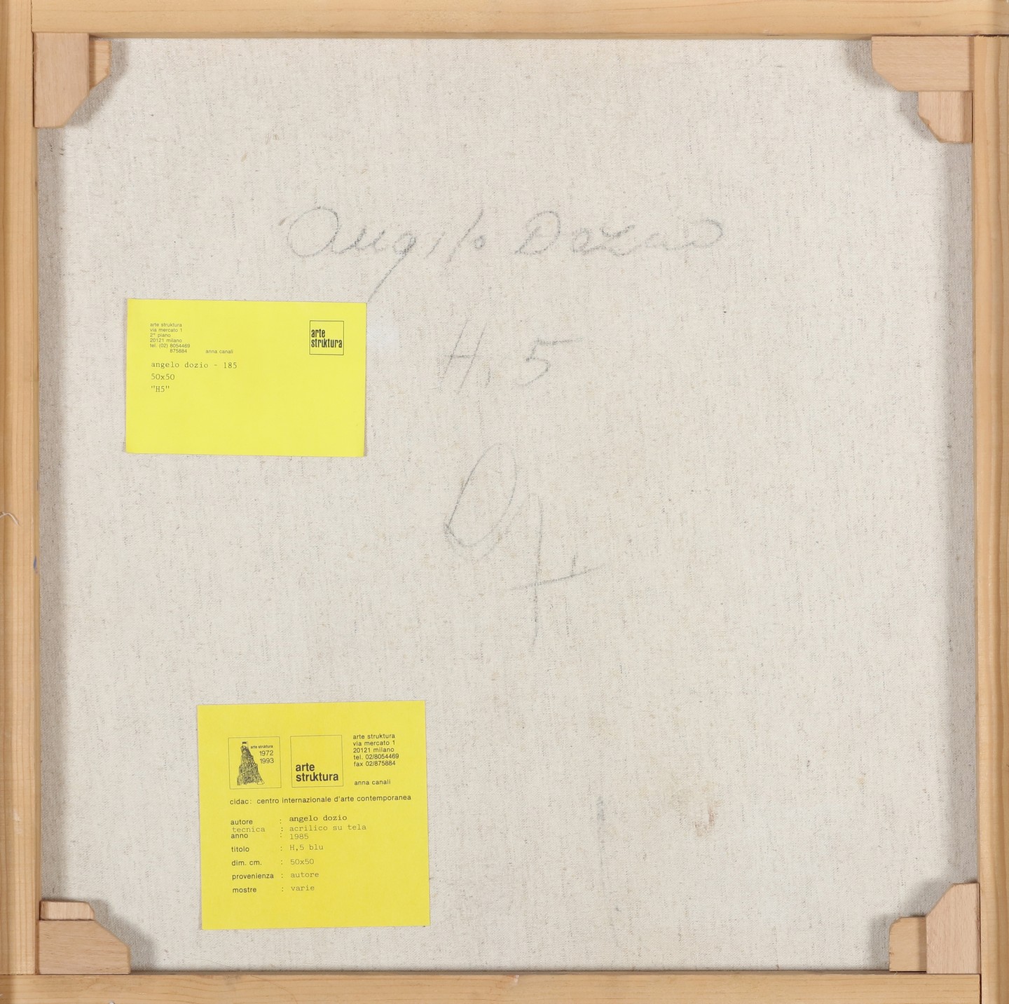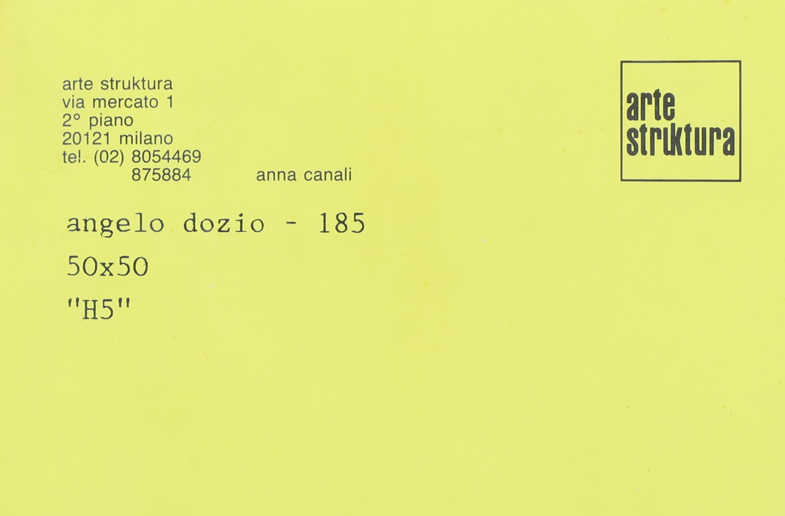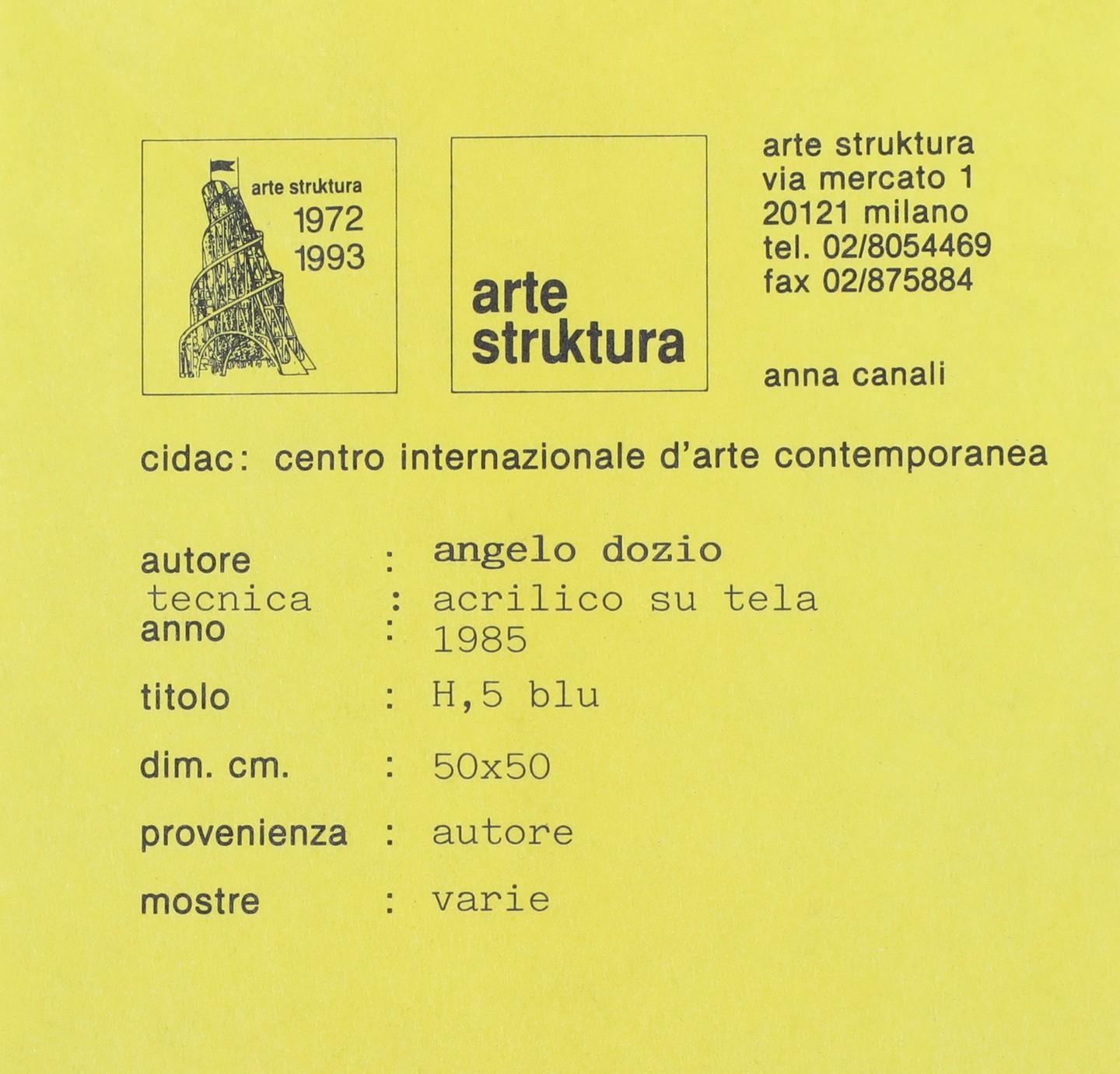 DOZIO ANGELO (n. 1941) H5. 1985. Acrylic on canvas. Cm 50,00 x 50,00. At the back title, signature and Arte Strucktura, Milan label. Small defects.