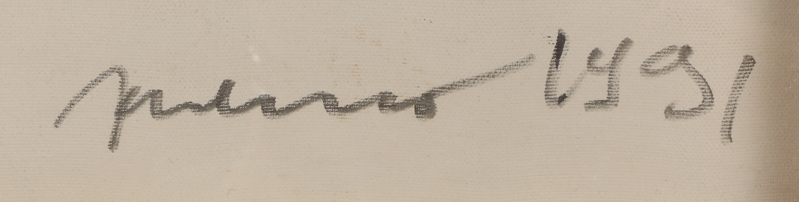 . 1991. Mixed media on canvas. Cm 50,00 x 60,00. Signature and year lower right.