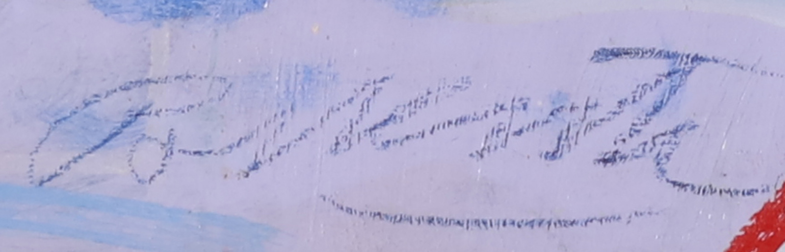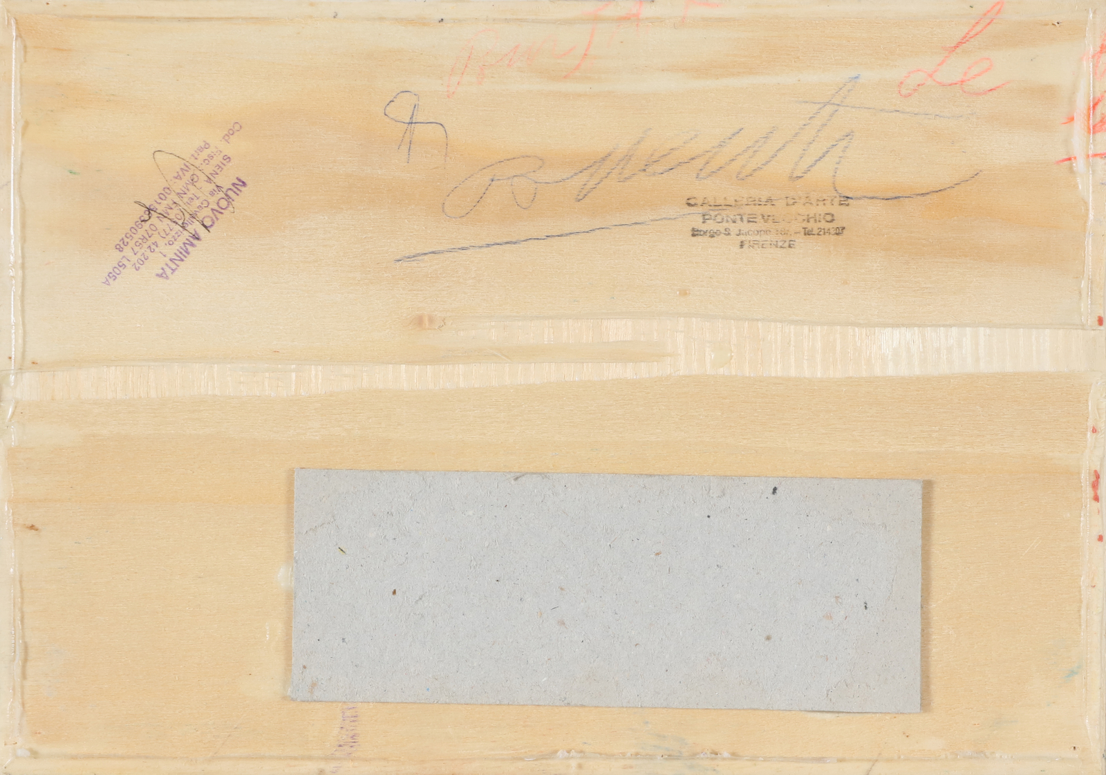 POSSENTI ANTONIO (n. 1933) Untitled. Oil on board. Cm 30,00 x 20,50. Signature lower center. At the back signature, Ponte Vecchio Gallery, Firenze stamp and Nuovo Amita Gallery, Siena stamp. Cornice presente