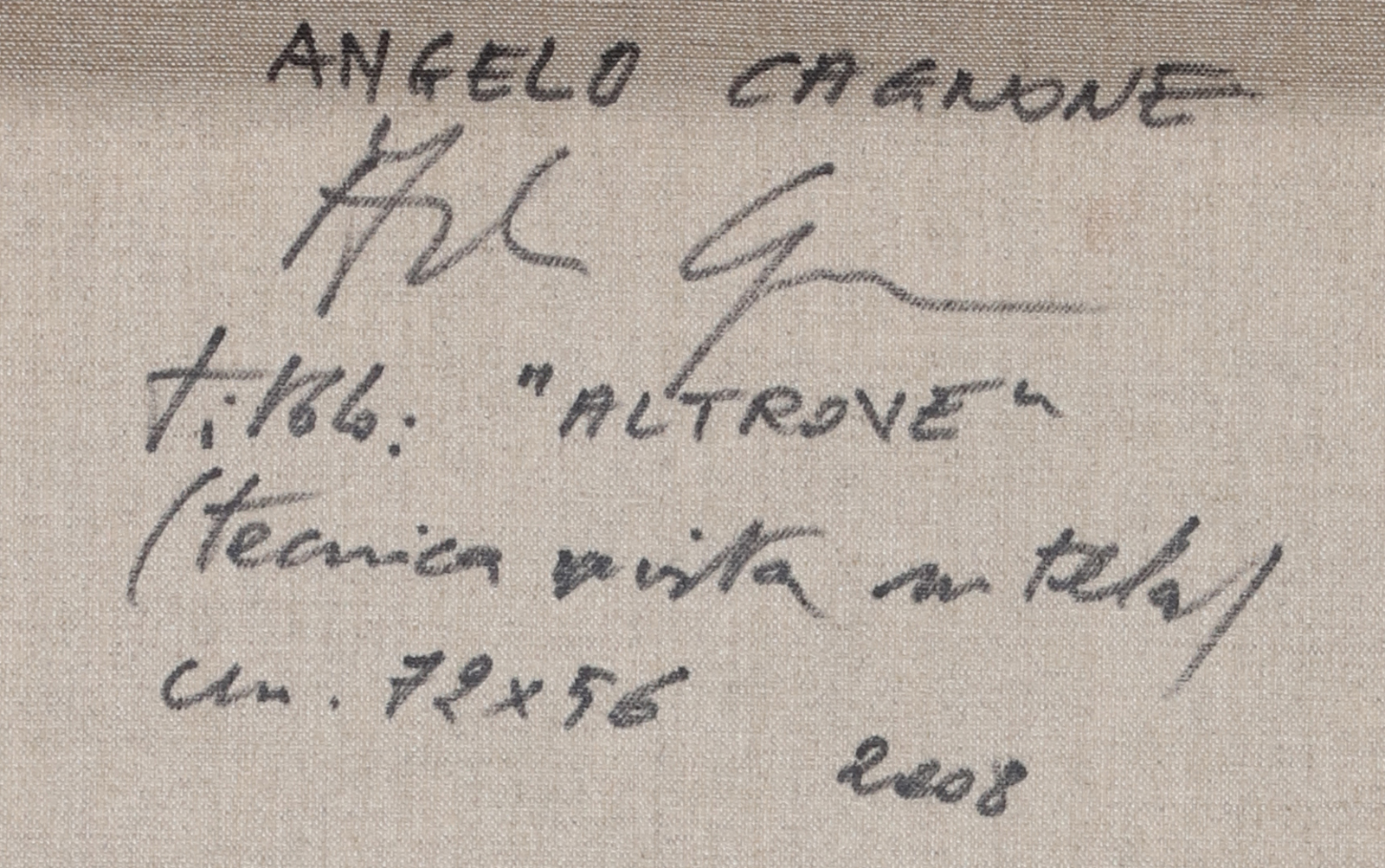 CAGNONE ANGELO (n. 1941) Altrove. . 2008. Tecnica mista su tela. Cm 56,00 x 72,00. Al retro titolo, firma e anno. Autentica dell'artista su fotografia.