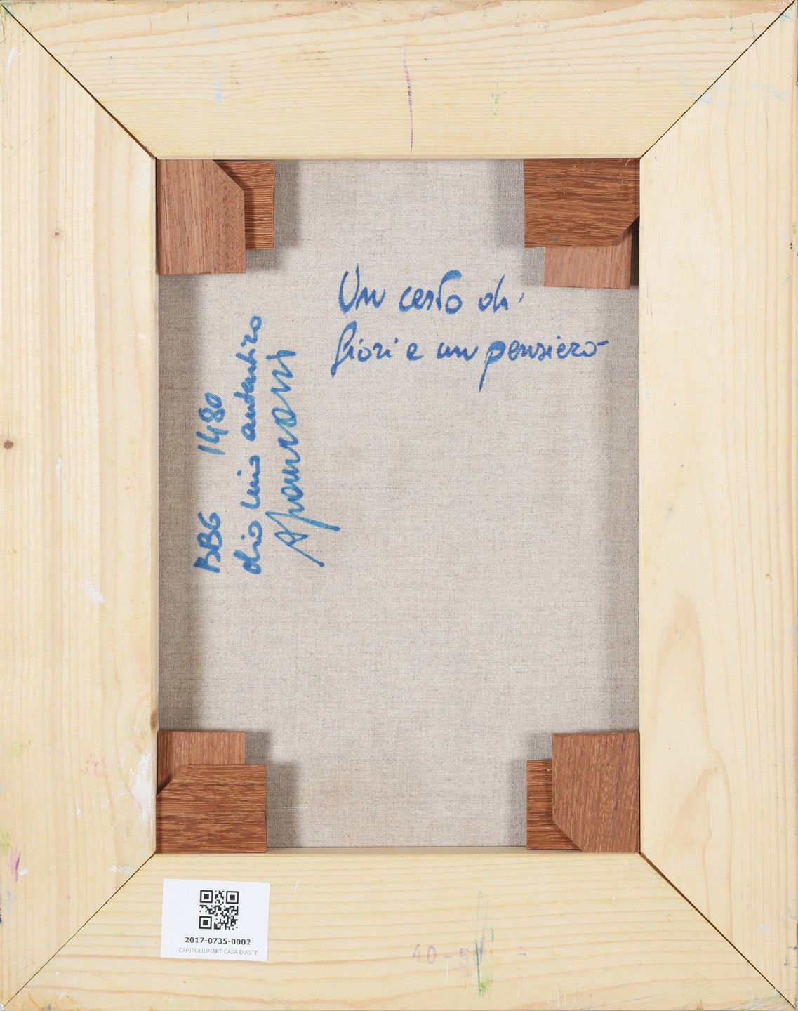 FACCINCANI ATHOS (n. 1951) Un cesto di fiori e un pensiero. Olio su tela . Cm 40,00 x 50,00. Firma in basso a destra. Al retro firma e titolo. Autentica dell'artista su fotografia.
