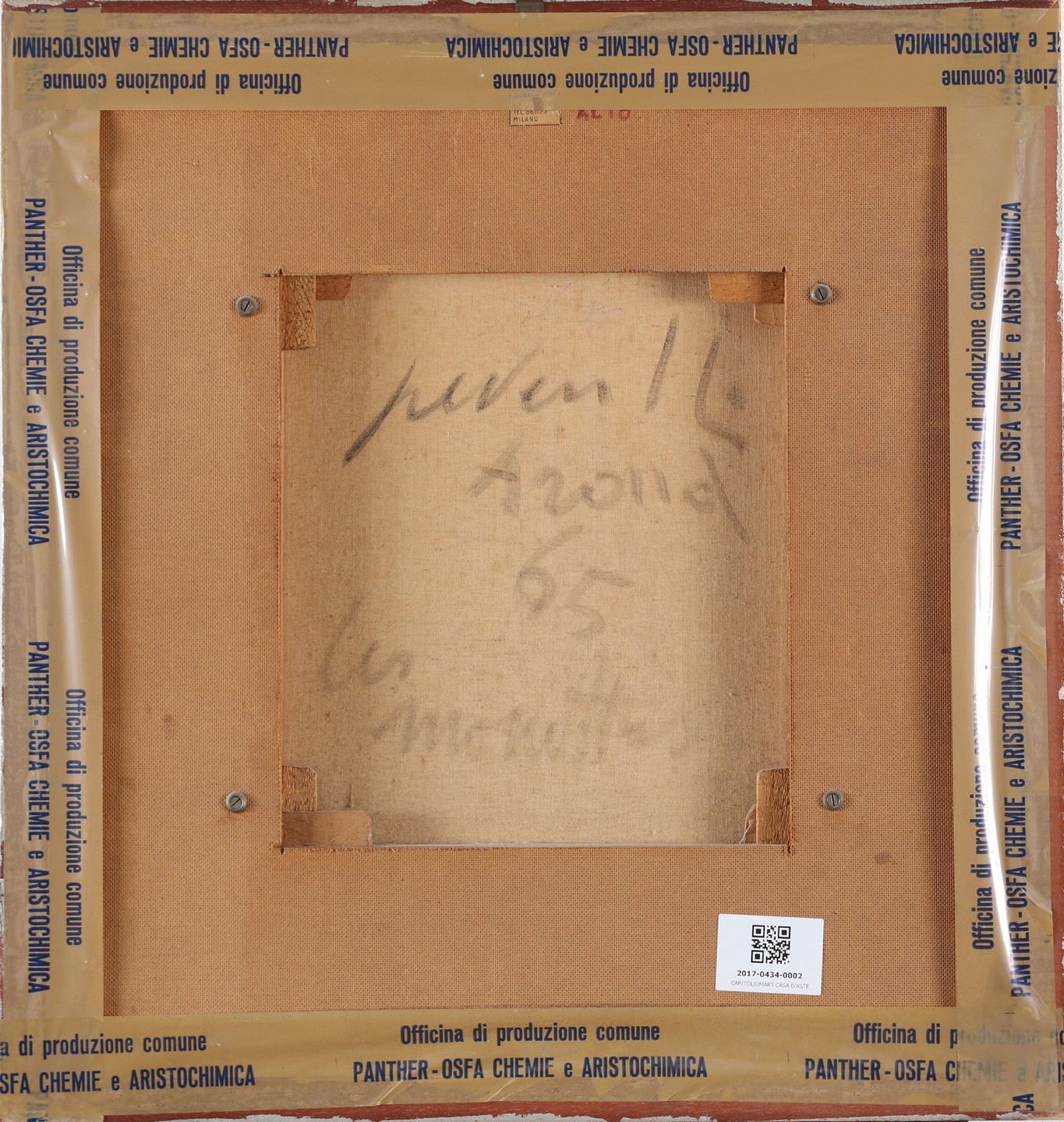PEVERELLI CESARE (1922 - 2000) Untitled. 1965. Oil on canvas . Cm 35,00 x 38,00. Signature and year lower right. At the back signature and year.