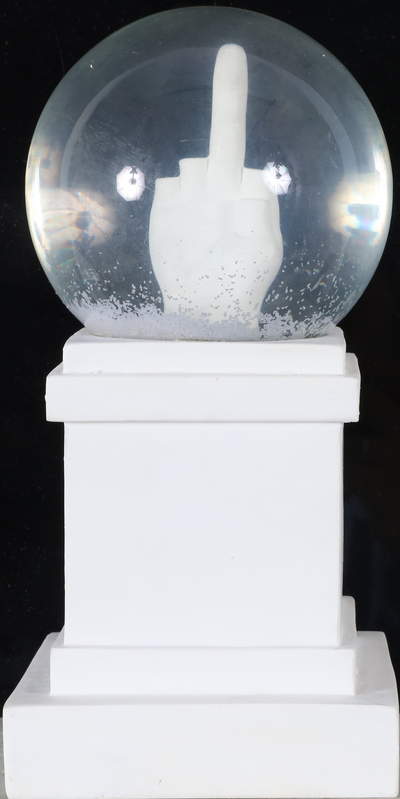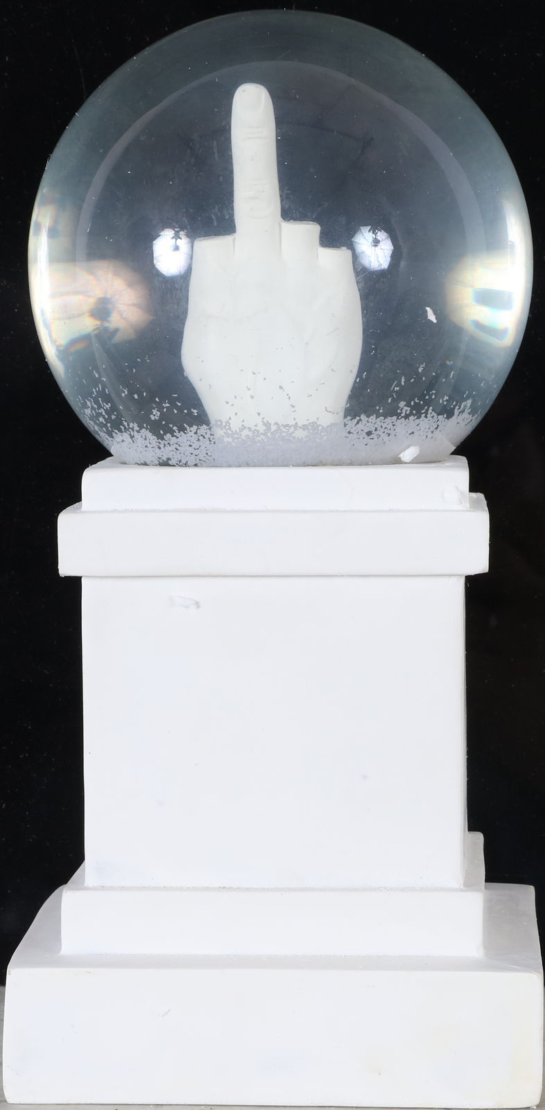 CATTELAN MAURIZIO (n. 1960) Snowball L.O.V.E. . Vetro. Cm 11,00 x 17,00 x 11,00. Riproduzione dell' opera monumetale di Maurizio Cattelan piazza affari. Prodotta da Seletti in 2000 esemplari in occasione di Milano design week 2014.