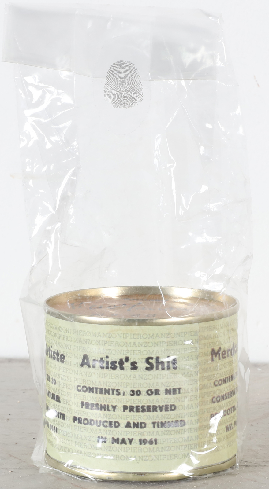MANZONI PIERO (1963 - 2013) Artist shit. Multiple. Cm 6,50 x 7,50. N. 48. Signature and edition on the cover. Vintage Shit of the Anniversary, May 2013. Produced and boxed by Piero Manzoni Foundation, Milan. Imprint on closure. Publication: Short History of the Artist's Shot, Skira 2014.