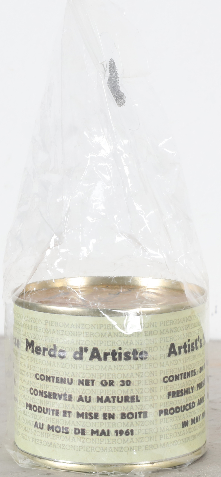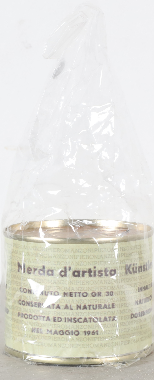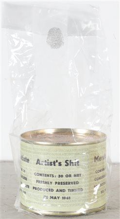 MANZONI PIERO (1963 - 2013) Merda d'artista. Multiplo. Cm 6,50 x 7,50. N. 48. Firma e tiratura sul coperchio. Merda d'Artista dell'anniversario, Maggio 2013. Prodotta ed inscatolata dalla Fondazione Piero Manzoni, Milano. Presente impronta a rilievo sulla chiusura. Pubblicazione: Breve Storia della merda d'Artista, Skira 2014.