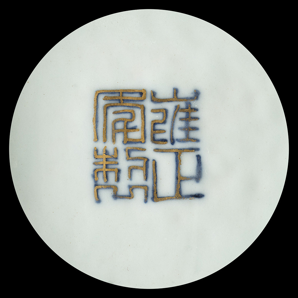 Ciotola ottagonale in porcellana con decoro rosso ferro, rosso rame e dorature, marchio apocrifo Yongzheng sul fondo