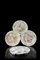Lotto composto da diciassette piatti in porcellana Swatow e tre antipastiere circolari ciascuna composta da nove ciotole componibili recuperati dal naufragio di Bình Thuan, con etichette originali (difetti)