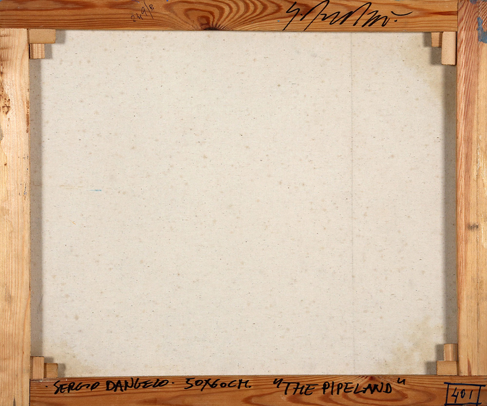 SERGIO DANGELO 1932 The pipeland Tecnica mista e collage su tela, cm. 50 x 60 Firmato sul retro Prov. Collezione Privata