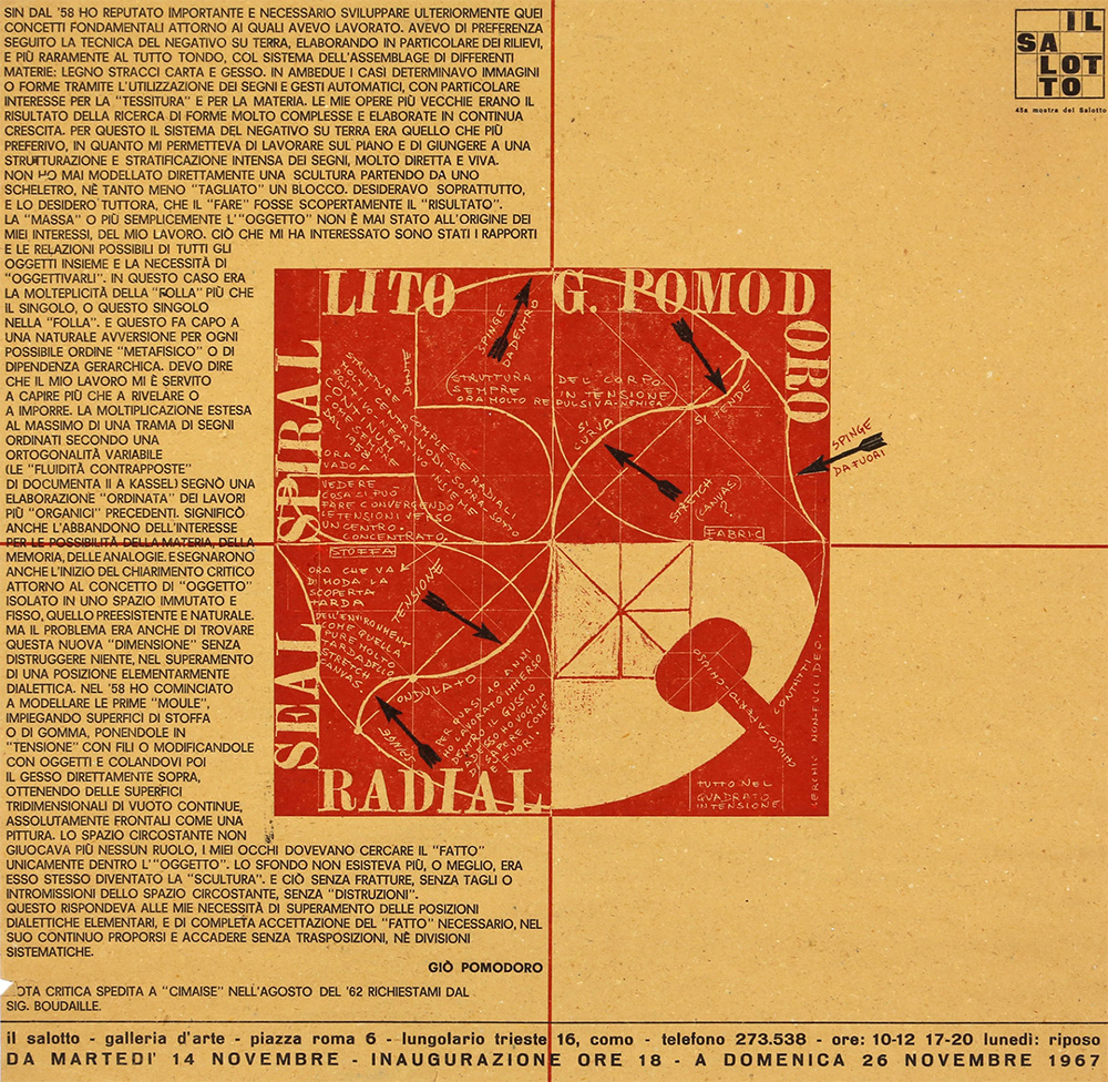 GIO POMODORO 1930 - 2002 Progetto per mostra presso Galleria Il Salotto, 1967...