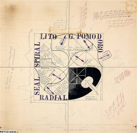 GIO POMODORO 1930 - 2002 Progetto per mostra presso Galleria Il Salotto, 1967 Tecnica mista su carta, cm. 50 x 50 Opera non firmata L'opera presenta degli aloni di sporco e residui di colla Prov. Collezione Privata