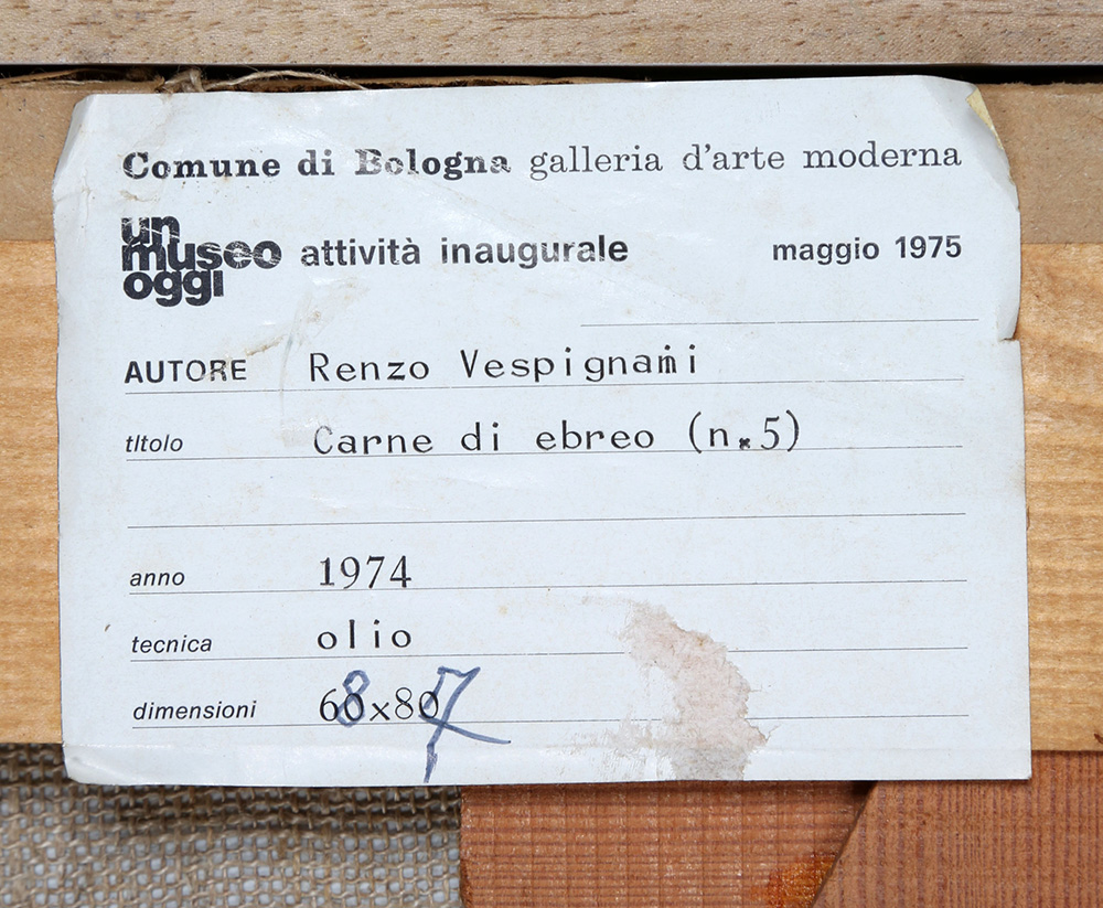 RENZO VESPIGNANI 1924 - 2001 Carne d'ebreo, 1974 Olio su cartone, cm. 87,5 x...
