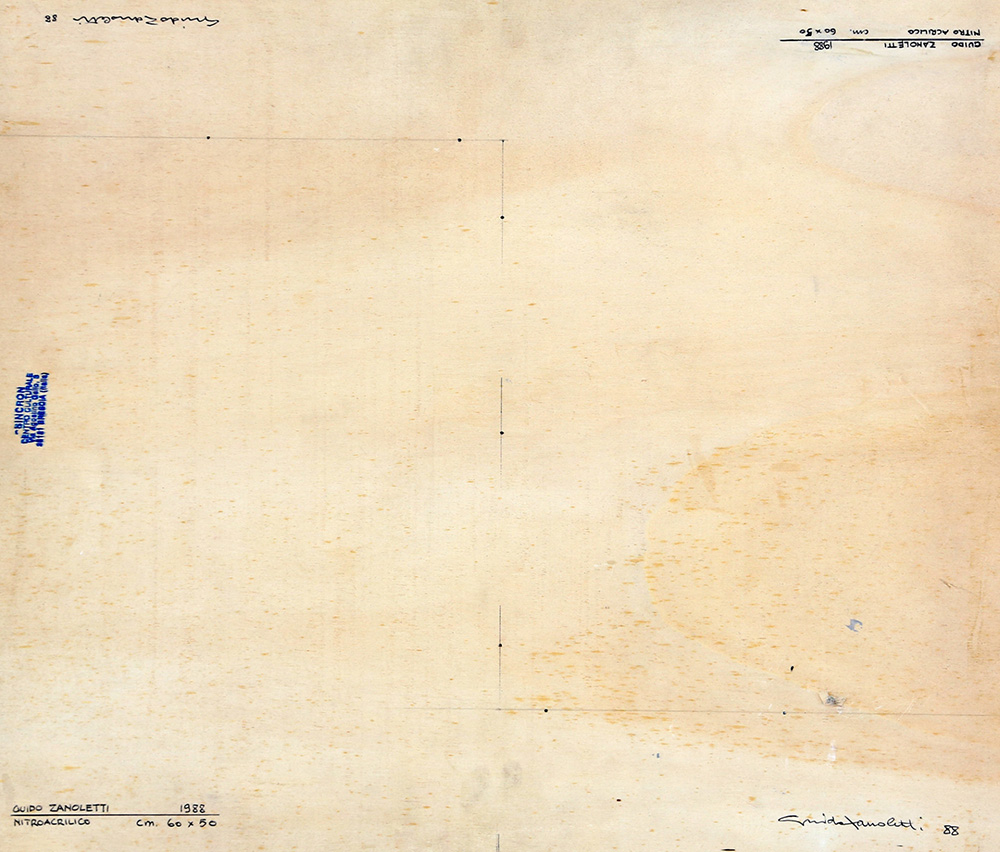 GUIDO ZANOLETTI 1933 Senza titolo, 1988 Nitroacrilico su tavola, cm. 50 x 62,5 Firmato e datato sul retro Timbro Centro Culturale Sincron, Brescia sul retro Prov. Collezione Privata