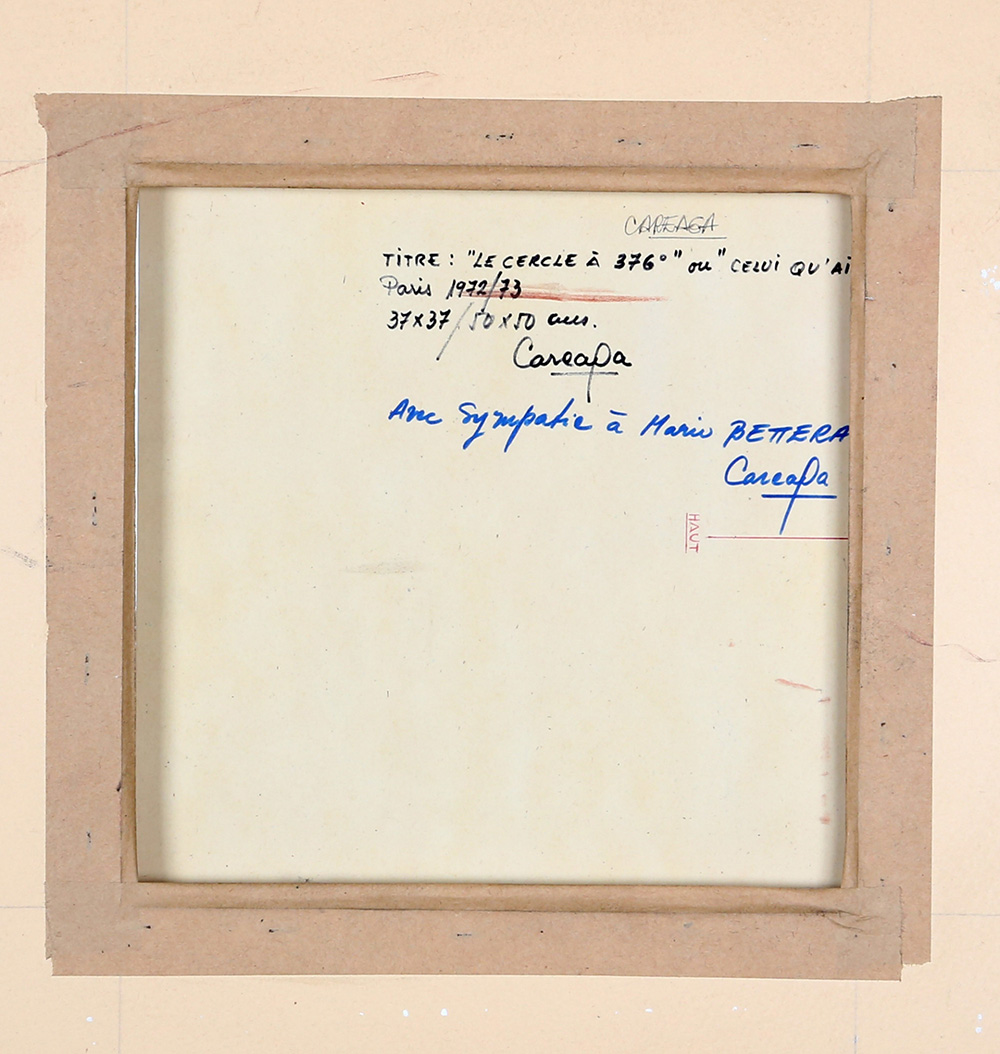 ENRIQUE CAREAGA 1944 - 2014 "Le cercle à 376°” ou "celui qu'aime", 1972-73 Olio su cartone, cm. 50 x 50 Firmato e datato sul retro Prov. Collezione Privata
